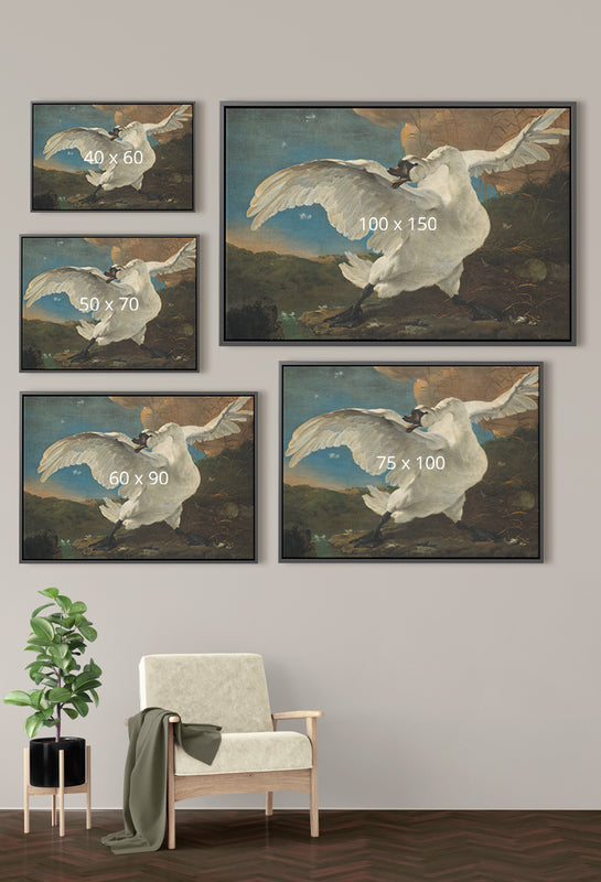 Wil jij van dit kunstwerk een sample ontvangen? Dat kan! Bestel een sample van De bedreigde zwaan op canvas met lijst en ontvang het bestedingsbedrag terug als korting op jouw bestelling.